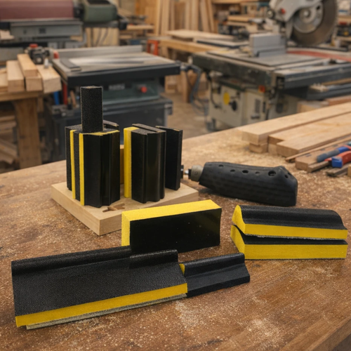 ست پدها: شامل پدهای مختلف برای گوشه، لبه و سطوح صاف (مانند نمونههای زردرنگ) موارد استفاده دیتیلینگ خودرو، نقاشی صنعتی، پرداخت نهایی چوب، صنایع کامپوزیت و.....